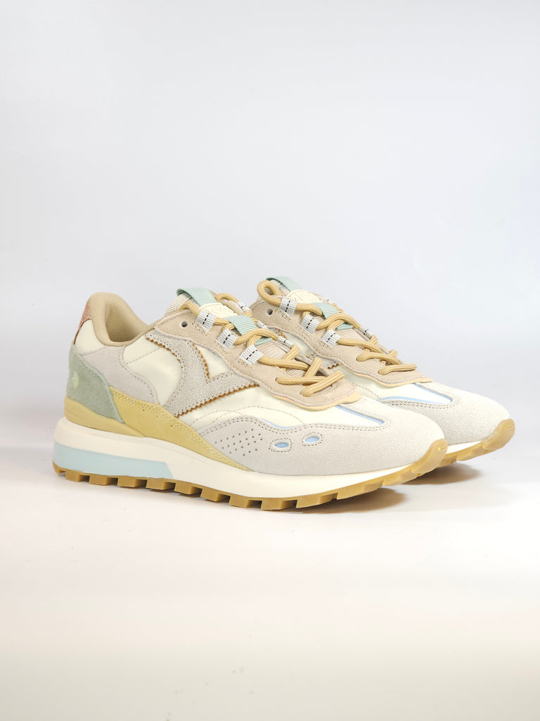 VICTORIA - SCARPA SNEAKERS IN PELLE BEIGE E PASTELLO PER DONNA 156116